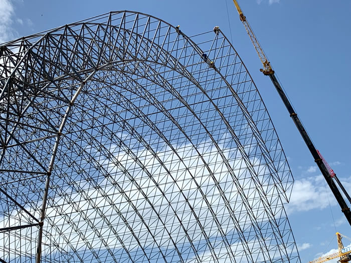 (2)网架加工前应对现场尺寸进行复测,确认无误后方可进行加工、安装;网架制作、运输、安装应遵守《空间网格结构技术规程》JGJ7-2010、《钢网架德阳螺栓球节点》JG/T 10-2009、《钢网架德阳螺栓球节点用高强度螺栓》 GB/T 16939-2016、《德阳钢结构德阳工程德阳施工规范》 GB50755-2012、《德阳钢结构德阳工程施工质量验收标准》 GB50205-2020。